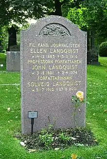 John Landquist a été marié à Elin Wägner de 1910 à 1922[3].