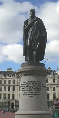 Quand les Français prennent la ville, Soult ordonne la construction d'un monument au-dessus de sa tombe[3]. Dans la Cathédrale Saint-Paul de Londres, un monument rappelle sa mémoire, ainsi qu'une statue érigée sur le George Square, dans sa ville natale de Glasgow, et qu'une statue équestre à Cheriton dans le Kent. Des salles portent encore son nom au High School of Glasgow et au Queen Victoria School', à Dunblane.