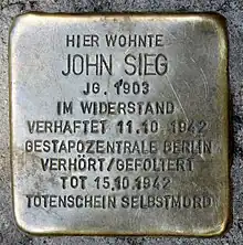 - (de) Alfred Gottwaldt, « John Sieg », sur stolpersteine-berlin.de (consulté le ).