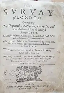 L'ouvrage pour lequel Stow est le plus connu est Th Survey of London (orthographe originale : A Survay of London), publié en 1598. Il s'agit d'un travail de chorographie : une visite topographique et historique détaillée quartier par quartier de la ville, fournissant un récit de ses constructions, de ses conditions sociales et de ses coutumes. Une deuxième édition révisée parait en 1603. Après la mort de Stow, une troisième édition, avec des ajouts d' Anthony Munday est publiée en 1618 ; une quatrième par Munday et Humfrey Dyson (en) en 1633 ; une cinquième avec des modifications interpolées par John Strype (en) en 1720 et une sixième par le même éditeur en 1754. L'édition de 1598 est réimprimée et éditée par William John Thoms (en), en 1842, en 1846, et avec illustrations en 1876. Une édition basée sur celle de 1598, éditée par Henry Morley (en) est publiée en 1889, et a été réimprimée à plusieurs reprises.