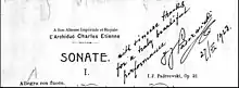 et la première page de la Sonate en mi bémol mineur op. 23, avec la dédicace du compositeur à Adela Verne :