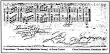 Les extraits présentés ici proviennent de la dernière page du Concerto pour piano en la mineur de Schumann avec une dédicace à Mathilde Verne de Clara Schumann :