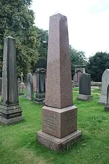 Il est enterré du côté sud du cimetière Dean le 7 avril. Un grand obélisque de granit rouge est érigé sur sa tombe.