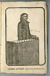 - (en) James Aitken, The life of James Aitken, commonly called John the Painter, an incendiary, who was tried at the Castle of Winchester, on Thursday the 7th day of March, 1777, and convicted of setting fire to His Majesty's dock-yard, at Portsmouth, Exhibiting a detail of Facts of the utmost Importance to Great Britain. The whole faithfully taken down from the convict's own mouth, on Friday, Saturday, and Sunday, preceding his Execution, Winton, J. Wilkes, (lire en ligne).