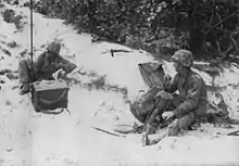 Les locuteurs du code navajo (Navajo Code talkers) étaient sous leur commandement[5],[6].