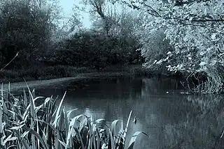 ![]() Petit lac dans la réserve | ![]() Vue vers le nord en direction du canal Kennet et Avon |