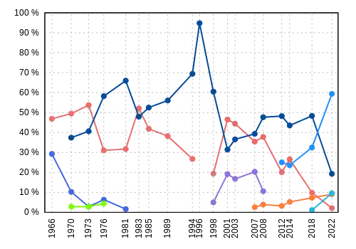 | Référendum de 1980 | 60,74 % | 39,26 % | 86,55 % | |