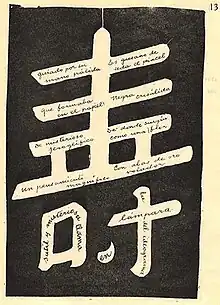 José Juan Tablada (Mexico, 1871 - New York, 1945), est un poète, journaliste et diplomate mexicain, reconnu comme l'initiateur de la poésie mexicaine moderne, et on lui attribue l'introduction de celle-ci dans la littérature en espagnol (es). Dans ses écrits, il a fait un usage indiscriminé des métaphores, comme le feront plus tard les ultraïstes. Il écrit aussi des calligrammes en même temps que Guillaume Apollinaire. Il a étudié l'art latino-américain, l'art précolombien et l'art contemporain. Il a influencé et soutenu des artistes tels que Ramón López Velarde (es), José Clemente Orozco et Diego Rivera, entre autres.