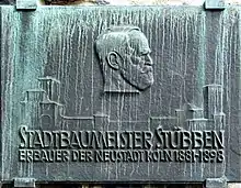 Cologne, plaque commémorative à la mémoire de Josef Stübben, le créateur de la ville nouvelle.