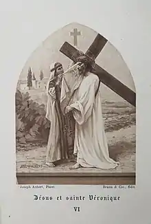 Jésus et sainte Véronique, photogravure d’après le tableau de Joseph Aubert publié par Braun et Cie. - Marie instruite par sa mère (la fontaine de Siloé)