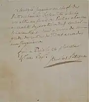 Lettre du 6 août 1821 de Joseph Marie Stanislas Becquey Beaupre, inspecteur divisionnaire des Ponts & Chaussées, remerciant Louis Becquey, directeur général des Ponts & Chaussées, de l'attribution du titre honorifique d'inspecteur divisionnaire honoraire[9].