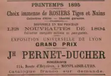 Entre 1907 et 1925, Joseph Pernet-Ducher remporta treize fois la médaille d'or au Concours international de roses nouvelles de Bagatelle, tenu à Paris. Deux de ses plus grands succès internationaux furent 'Madame Édouard Herriot' (1913) puis 'Angèle Pernet' (1924)[6]. Surnommé le « magicien de Lyon » [7] par les anglo-saxons, il fut nommé membre d'honneur de l'American Rose Society. En l'absence d'héritier, il céda l'entreprise à Jean Gaujard en 1924 dont la pépinière à Feyzin devint une succursale des établissements Pernet-Ducher.