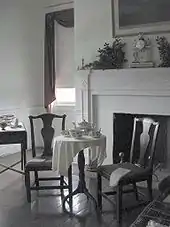 En ce qui concerne les objets, Thomas Cooper, après la mort de Joseph Priestley, vend une collection de quelques-uns des appareils et autres bibelots personnels de son ami au Dickinson College de Carlisle[72],[N 6], qui les expose chaque année lors de la remise du Priestley Award à un scientifique ayant fait des « découvertes qui contribuent au bien-être de l'humanité »[73],[72]. La maison a perdu son mobilier lorsque Joseph Jr. et sa famille ont déménagé en Angleterre. Depuis, on ne sait plus exactement ce qui se trouvait initialement dans la maison. Elle est meublée et décorée avec des objets donnés par les descendants des Priestley et d'autres, similaires à ceux énumérés par Priestley comme ayant été perdus dans l'incendie de sa maison à Birmingham[74]. Un certain nombre d'objets ayant appartenu à Joseph et à Mary au cours de leur existence, tant en Grande-Bretagne qu'en Amérique sont visibles dans toute la maison, dont certaines balances et microscopes de Joseph[75]. Les portraits, gravures, cartes, graphiques et livres ont été soigneusement sélectionnés pour reproduire les possessions des Priestley à cette époque[76]. Une chambre au deuxième étage est consacrée à la présentation de la vie d'une femme au XVIIIe siècle[74].