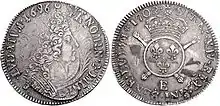 - Louis d'or à l'écu (1690-1693) et Écu aux 8 L (1690-1693) ;