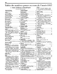 À la fin de chaque année, parait dans le dernier volume une table des matières générale classée par ordre alphabétique. Seule l'année 1950 ne dispose pas de table des matières. Celle-ci est reprise dans le dernier volume de l'année 1951. Il y a aussi une table « des parties, des chroniques des décisions de jurisprudence ainsi qu’une table concernant les articles, commentaires, notes et chroniques classés par noms d’auteurs y sont présentées »[4].