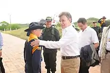 En , les FARC décrètent un cessez-le-feu définitif dans la foulée d'un accord de paix conclu avec le gouvernement pour mettre fin à 52 ans de conflit armé[27]. Juan Manuel Santos décide de soumettre l'accord de paix conclu entre le gouvernement et les FARC à un référendum. Mais, à la surprise générale, le « non » l'emporte avec 50,2 % des suffrages. La participation à ce scrutin est de seulement 37,4 %, en partie en raison de l'ouragan Matthew[28].