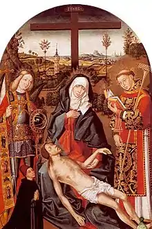 Piedad con san Miguel, san Vicente y un donante, huile sur bois, Sacristía de los Cálices (es), cathédrale de Séville.