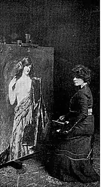 À vingt-et-un ans, elle commence sa carrière artistique « professionnelle » en présentant au Salon des Artistes français de 1888 une aquarelle représentant La gitane. Carolus-Duran, qui encadre l’atelier qu’elle fréquente, l’a explicitement soutenue en demandant à son collègue Jean-Jacques Henner d’infléchir les membres du jury en sa faveur[Note 1].