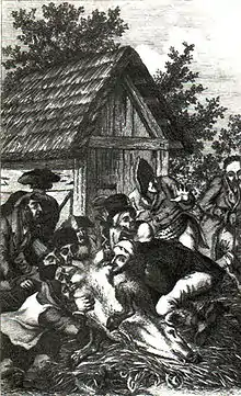 « Derrière la truie, se trouve un rabbin qui soulève la patte droite de la truie, se dresse derrière la truie, se penche et regarde avec grand effort le Talmud sous la truie, comme s'il voulait lire et voir quelque chose de très difficile et d'exceptionnel. »