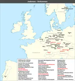 | 25 | Ratisbonne | Allemagne | 1371 | Cathédrale | Sur le pilier à l'entrée sud-ouest[1] |