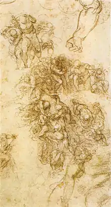 Étude, Casa Buonarroti, 41,8 × 28,8 cm. Le cadre de L'Assomption du Pérugin est encore visible.