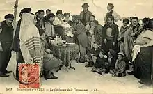 Les Juifs s'insèrent économiquement, culturellement et linguistiquement dans la société, tout en conservant leurs particularités culturelles et religieuses[58]. Si elle est lente, l'arabisation est plus rapide en milieu urbain, à la suite de l'arrivée de Juifs d'Orient dans le sillage des Arabes[57], et dans les classes aisées[61]. On les appelle « peuple de Dieu » pour les uns ou « fils de la mort » (oulad el mout) pour les autres[62].
