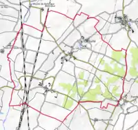 L'occupation des sols de la commune, telle qu'elle ressort de la base de données européenne d’occupation biophysique des sols Corine Land Cover (CLC), est marquée par l'importance des territoires agricoles (82,4 % en 2018), néanmoins en diminution par rapport à 1990 (83,6 %). La répartition détaillée en 2018 est la suivante : terres arables (67,3 %), zones agricoles hétérogènes (15,1 %), forêts (12,5 %), zones urbanisées (3,5 %), zones industrielles ou commerciales et réseaux de communication (1,6 %)[16]. L'évolution de l’occupation des sols de la commune et de ses infrastructures peut être observée sur les différentes représentations cartographiques du territoire : la carte de Cassini (XVIIIe siècle), la carte d'état-major (1820-1866) et les cartes ou photos aériennes de l'IGN pour la période actuelle (1950 à aujourd'hui)[Carte 2].