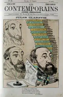 Arsène Arnaud Clarétie, dit Jules Claretie ou Jules Clarétie, né le à Limoges et mort le à Paris[2], est un romancier, dramaturge français, également critique dramatique, historien et chroniqueur de la vie parisienne. Au cours de sa longue carrière, outre la signature Jules Claretie, il a recours à plus d'une douzaine de pseudonymes afin de publier ses œuvres littéraires et ses articles dans la presse. Il a également utilisé, avec Charles-Edmond Chojecki, le pseudonyme collectif de Jules Tibyl.