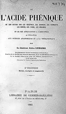 - Jules Lemaire, De l'acide phénique, Paris, Germer-Baillière, , 743 p. (lire en ligne)