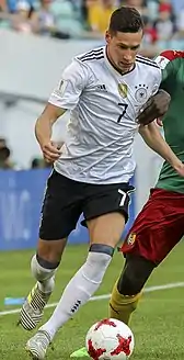 Convoqué pour la Coupe des confédérations 2017 avec la Mannschaft, Draxler est également nommé capitaine par Löw durant cette compétition. L'Allemagne remporte cette dixième édition le en se défaisant du Chili (0-1) au stade de Krestovsky Stadium à Saint-Pétersbourg. Durant la competition Draxler étonnera par rapport a sa justesse technique a son talent, il marquera contre l'Australie lors du 1er match il est désigné meilleur joueur de la compétition et reçoit son trophée à l'issue de la finale des mains de Diego Maradona[22]. Durant la compétition il a su prouver un leadership pour mener son équipe a la victoire