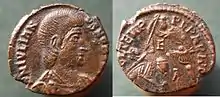 Julien césar imberbe. Monnaie frappée à Arles en 358.