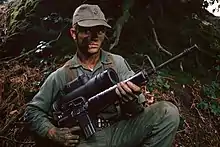 Un fusil M16A1 équipé de la lunette AN/PVS-2 Starlight.