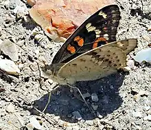 Les ocelles sont un petit et un très gros ocelles aux ailes antérieures et deux gros ocelles aux ailes postérieures.