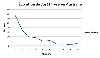 Côté océanique, le la piste débute dans le ARIA Singles Chart, le hit-parade australien, au 34e rang et se déplace la semaine suivante au 17e, devenant donc la plus haute ‘montée numérique’ de cette semaine[37],[38]. Le , la chanson fait une farouche apparition à la première position du palmarès[39]. Grâce à ce succès le morceau est certifié triple disque de platine par l’Australian Recording Industry Association, aussi appelée ARIA, pour ses 210 000 copies vendues dans cette région[40]. Le , le titre devient celui étant resté le plus longtemps dans l’ARIA Singles Charts depuis sa création, en restant donc plus de 81 semaines dans le top 100[41]. Au Canada, Just Dance entame sa montée dans le Canadian Hot 100 le à la 97e position[42]. Le , sa progressivité accomplie, elle trône sur le classement canadien pendant plus de cinq semaines consécutives[43]. Comme un peu partout autour du monde, le morceau est à son tour certifié dans ce pays, cette fois-ci six fois disque de platine par la Canadian Recording Industry Association, alias CRIA, en , pour ses 240 000 copies numériques distribuées[44].