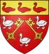 De gueules à 2 clefs d'or posées en chevron , accompagnées de 3 canettes d'argent 2 et 1, au chef d'or chargé de 3 merlettes de gueules[4].