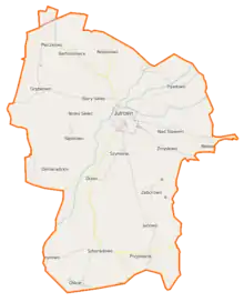 D'après les données de 2002 la superficie de la commune de Jutrosin est de 114,93 km2, répartis comme tel :