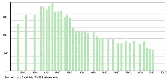(Sources : Ldh/EHESS/Cassini jusqu'en 1999[18] puis Insee à partir de 2006[19].)