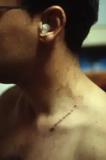 - l'effet de souffle (blast) par surpression, échauffement et vaporisation[16], responsable d'hémorragies internes, d'atteinte pulmonaire et de traumatismes indirects (contusions et fractures par chute ou projection) ;