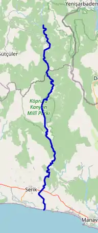 - (en) Cet article est partiellement ou en totalité issu de l’article de Wikipédia en anglais intitulé « Köprüçay River » (voir la liste des auteurs).