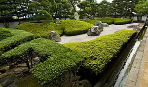 L'énorme hon-dō (porte principale) est un bien culturel important du Japon[8]. À sa gauche se trouvent le kaisan-dō et le shoin (salle d'études). Entre eux, l'étang au lotus du temple a été construit au début du XVIIe siècle.