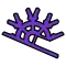 Connecteur violet | Il comporte quatre pinces, pas de trou, mais associé à lui-même ou à un connecteur bleu, il permet de créer des arêtes ou des coins (existe aussi en gris). |