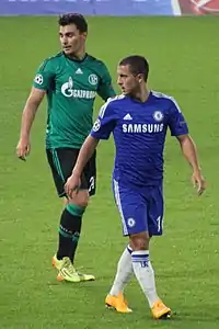 Kaan Ayhan (à gauche) et Eden Hazard (à droite) lors d'un match de Ligue des champions.