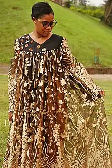 Le Kaba' Ngondo (ou Kaba) est une robe en tissu ample qui couvre tout le corps, portée par les femmes Sawa au sud du Cameroun, notamment lors du Ngondo, la fête traditionnelle des peuples côtiers[1].