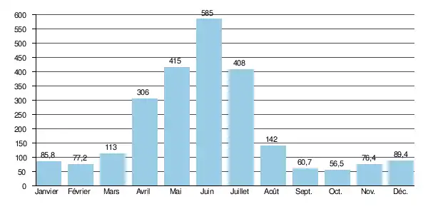 La lame d'eau écoulée dans cette partie du bassin atteint ainsi le chiffre de 185 millimètres par an, ce qui peut être considéré comme assez abondant dans le contexte du climat aride régnant dans la plus grande partie de la région du bassin de l'Indus.