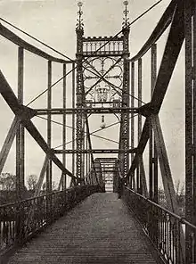 La passerelle fut ouverte à l'usine de matériel électrique et la câblerie dès le 1er octobre 1898, puis cédée au mois de novembre 1898 à la commune d'Oberschöneweide. Le coût des travaux, ouvrages annexes compris, s'élevait à 110 000 Mark-or[4]. L'importance de l'ouvrage lui valut le nom de Kaisersteg.