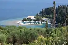 À Kalámi se trouve la baie Kouloura, une petite crique doté d'un port, dont la principale bâtisse appartient à la famille Agnelli.