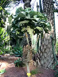 Le Kalanchoé de Behara est un arbuste succulent pouvant atteindre 3 m de haut[4]. De port ramifié, il s'élargit en grandissant et perd ses feuilles basses en laissant de grandes cicatrices[1] creuses, dont le rebord durci, aigu et blessant joue très efficacement le rôle de piquants courts.