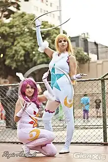 - Elles entrent au Kaleido en même temps que Sora, sauf qu'elles ont dû passer les auditions (Mia en était à sa 3e tentative). Ce qui provoquera une certaine jalousie et rancœur, au départ, vis-à-vis de Sora. D'autant que le comportement louche du directeur ne feront qu'accentuer les rumeurs allant à contre la japonaise. Mais impressionnées par l'obstination et le talent de Sora pour gagner un défi un lancé par Layla, elles comprendront très vite que rien n'était fondé et deviendront ses meilleures amies.
