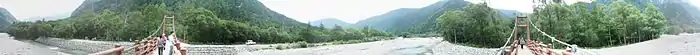 La rivière Azusa coule à travers la vallée et alimente le lac Taishō situé à la base du mont Yake. Le lac Taishō a reçu ce nom parce qu'il a été formé par l'éruption du mont Yake en 1915 au cours de l'ère Taishō de l'histoire du Japon[1].