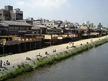 Les balades sur ses berges, longées par des chemins des deux côtés, sont prisés par les riverains et les touristes à Kyoto. En été, de nombreux restaurants y ouvrent leur terrasse surplombant la rivière. Le niveau de l'eau est généralement assez bas (moins d'un mètre), sauf durant la saison des pluies, si bien que des pierres forment des passages aménagés permettant de traverser à pied à plusieurs endroits.